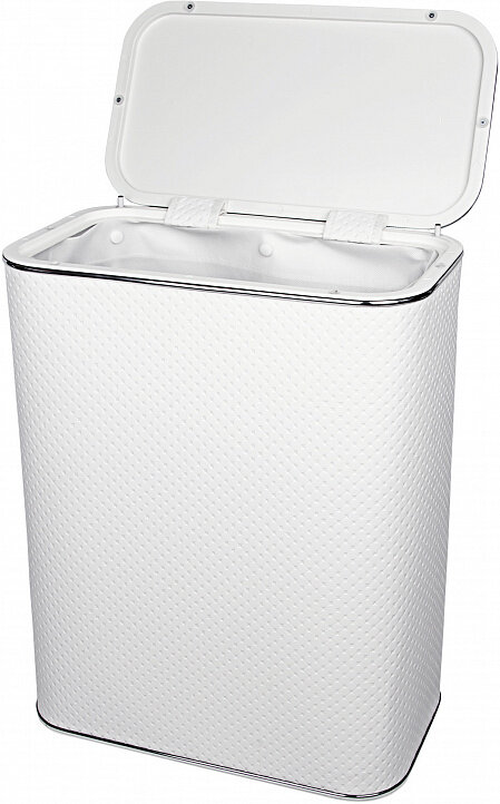 Корзина для белья Geralis SWH-B Ромб стежка, белая, кант хром, стандартная