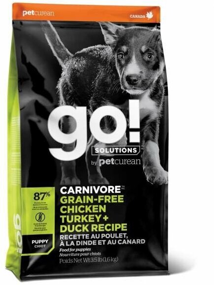 Сухой корм для щенков GO! Carnivore, беззерновой, курица, индейка, утка 1 уп. х 1 шт. х 1.6 кг