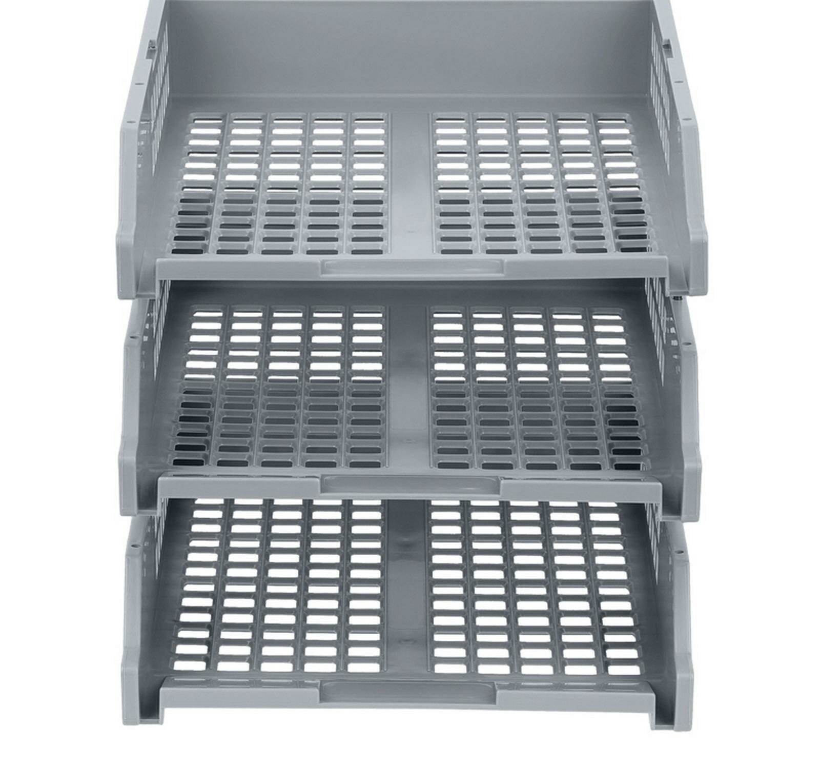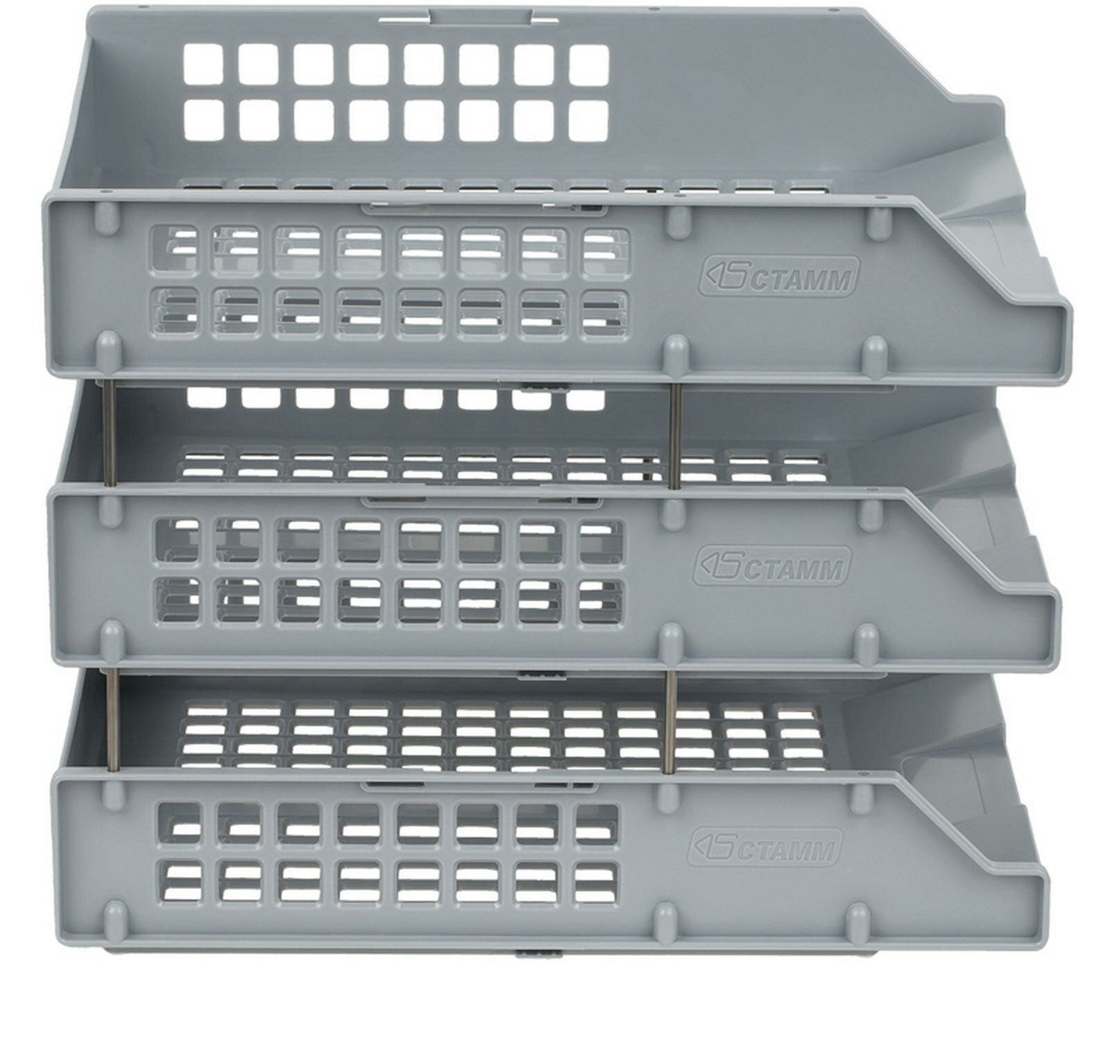 Лоток для бумаг горизонтальный Стамм Strong на металлических стержнях серый (3 штуки в упаковке), 374923