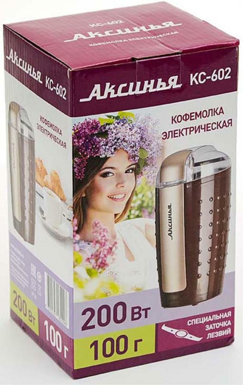 Кофемолка аксинья КС-602 коричневый : лезвия из нерж.стали ,200 Вт, вместимость 100 г