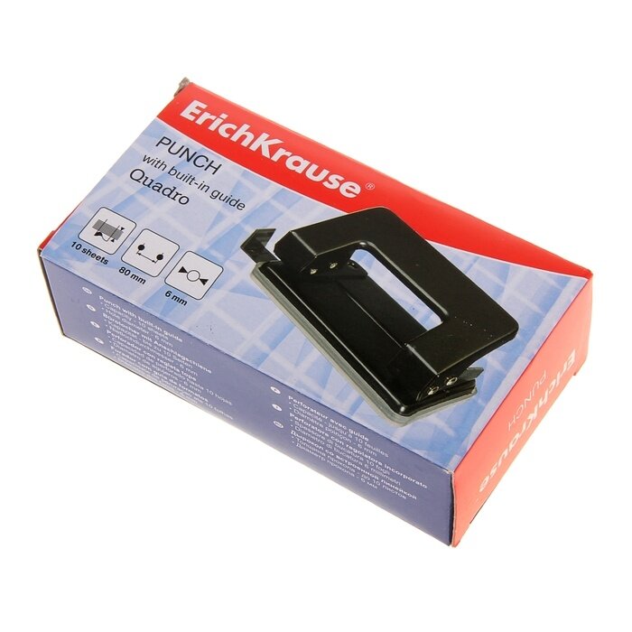 ErichKrause Дырокол ErichKrause Quadro, до 10 листов, диаметр прокола 6 мм, расстояние между проколами 80 мм, чёрный