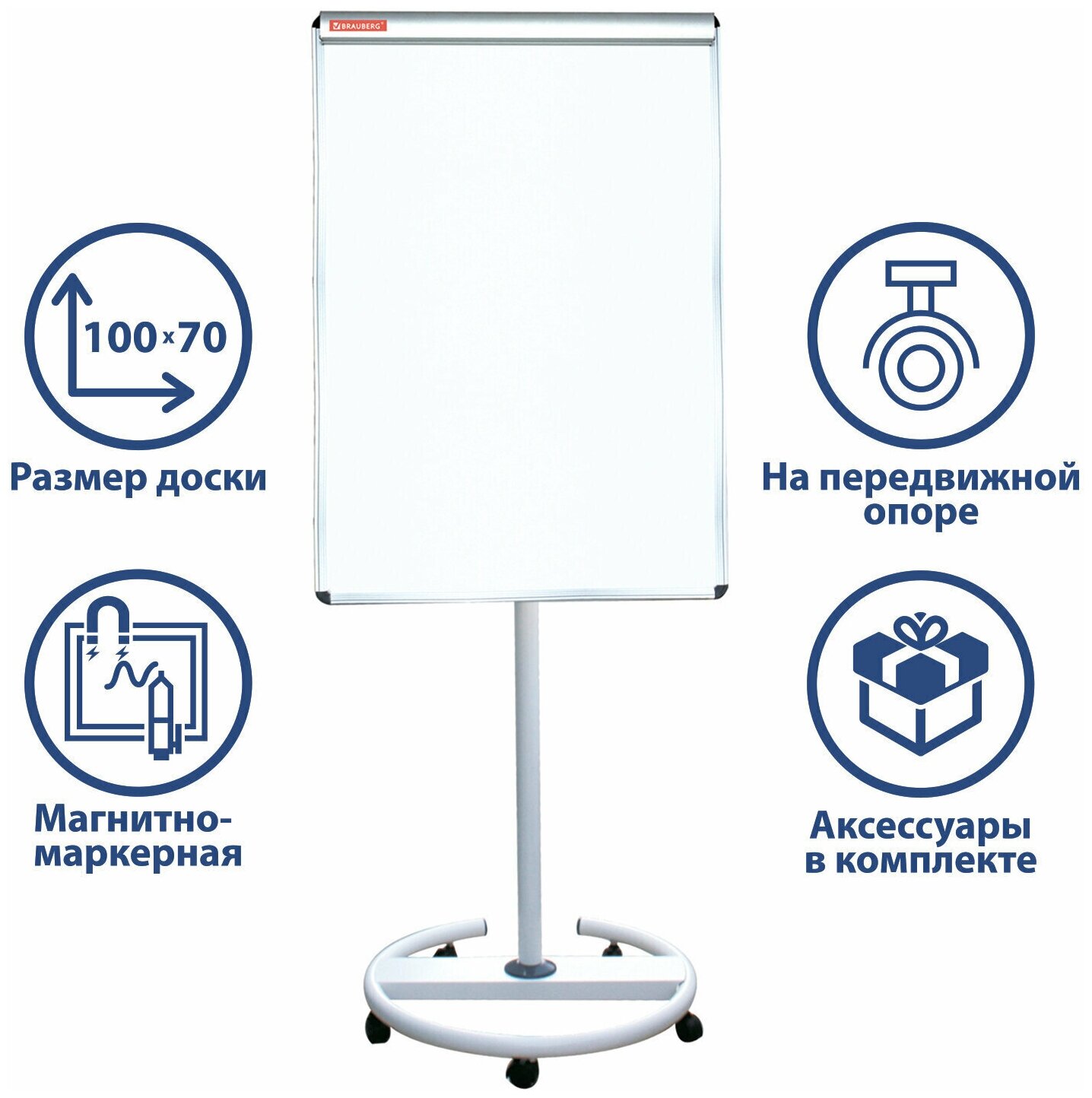 Флипчарт магнитно-маркерный BRAUBERG 100х70 см, передвижной