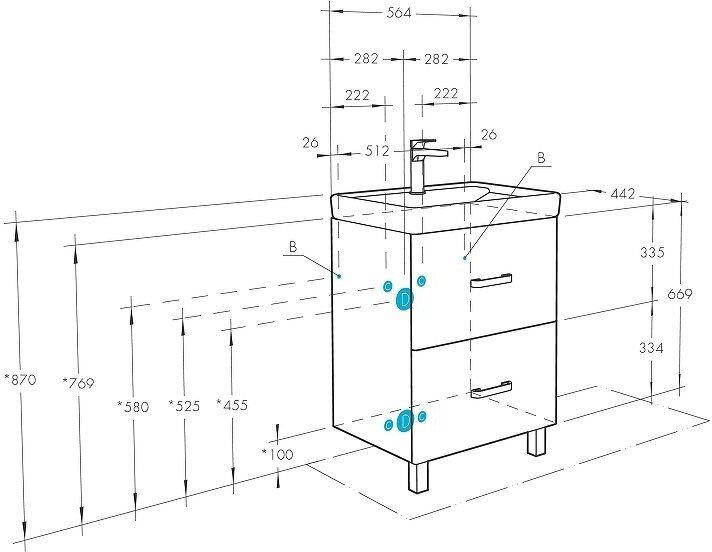 Тумба под раковину напольная с 2-я ящиками AQUATON Америна 60 Н 1A169201AM010
