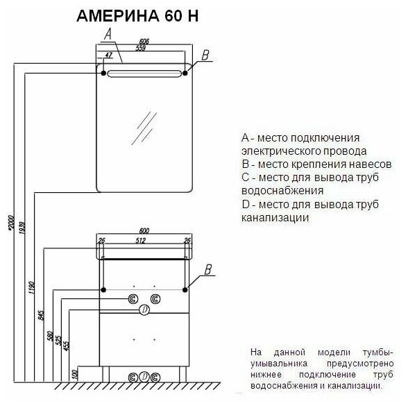 Тумба под раковину Aquaton Америна 60 Н 1A169201AM010