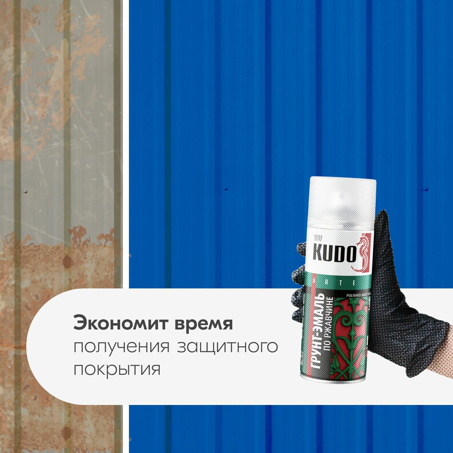 Грунт-эмаль KUDO гладкая матовая по ржавчине, небесно-синий, 520 мл, 1 шт.