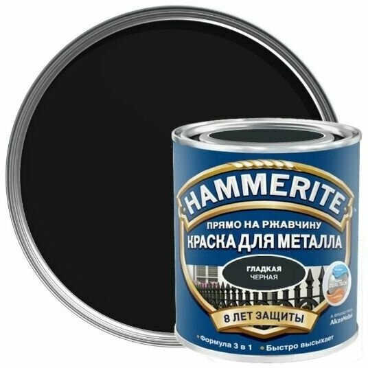 Краска для металла 3 в 1 прямо на ржавчину Hammerite гладкая глянцевая (0,75л) черный RAL 9005