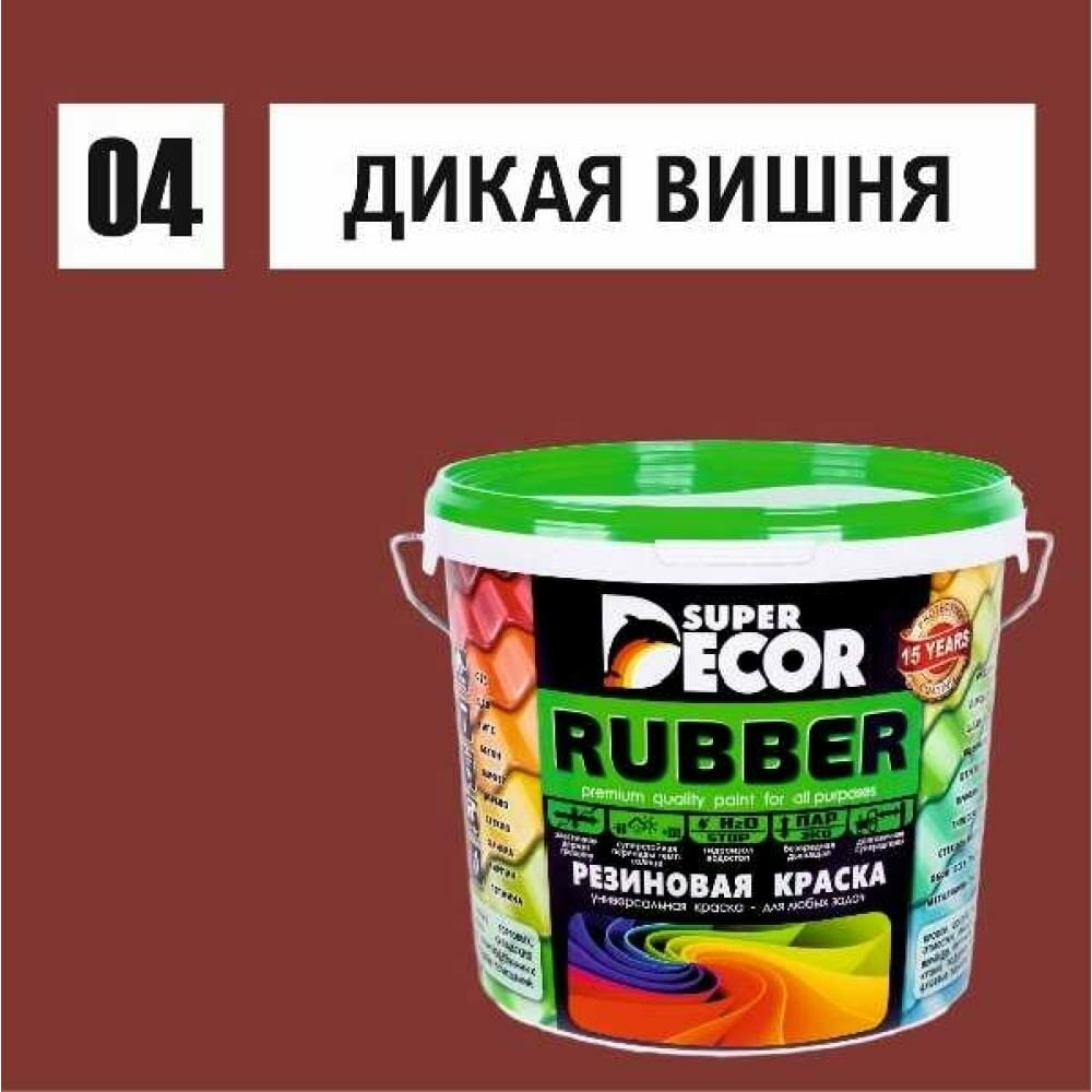 Резиновая краска Super Decor Rubber №04 Дикая вишня 12 кг, матовая краска без запаха, для бетона, дерева, фасада