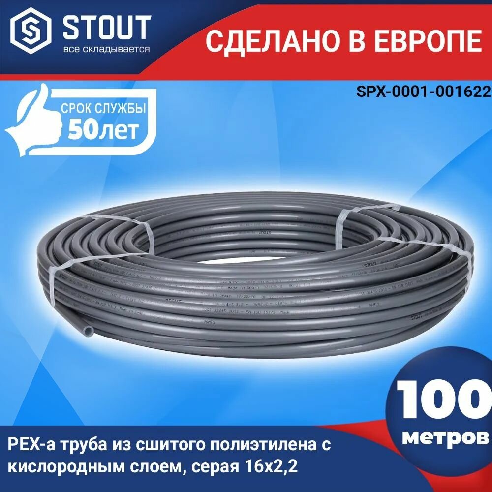SPX-0001-001622 STOUT 16х2,2 (бухта 100 метров) PEX-a труба из сшитого полиэтилена с кислородным слоем, серая