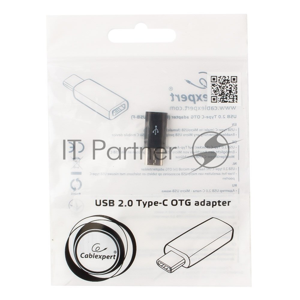 Адаптер USB2.0 Cm-microBf Cablexpert A-USB2-CMmF-01 с поддержкой OTG насадка на microUSB кабель - чёрный