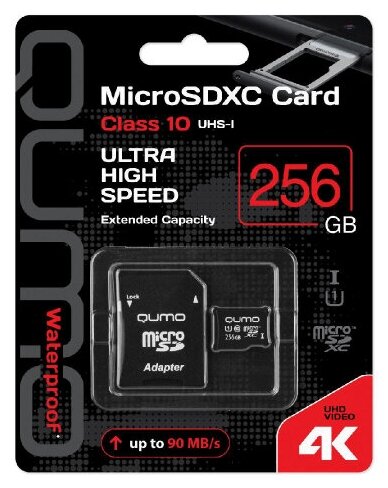 Карта памяти microSDXC Qumo QM256GMICSDXC10U3 256 Гб класс 10 UHS-I (U3) - 90*70 МБ/с UHD Video 4K - с адаптером SD