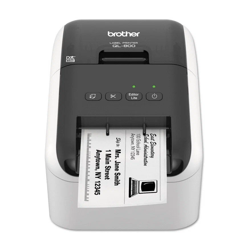 Принтер этикеток QL-800 с USB для ПК и Mac. Печать черного и красного текста. Печатает наклейки шириной до 62 мм.