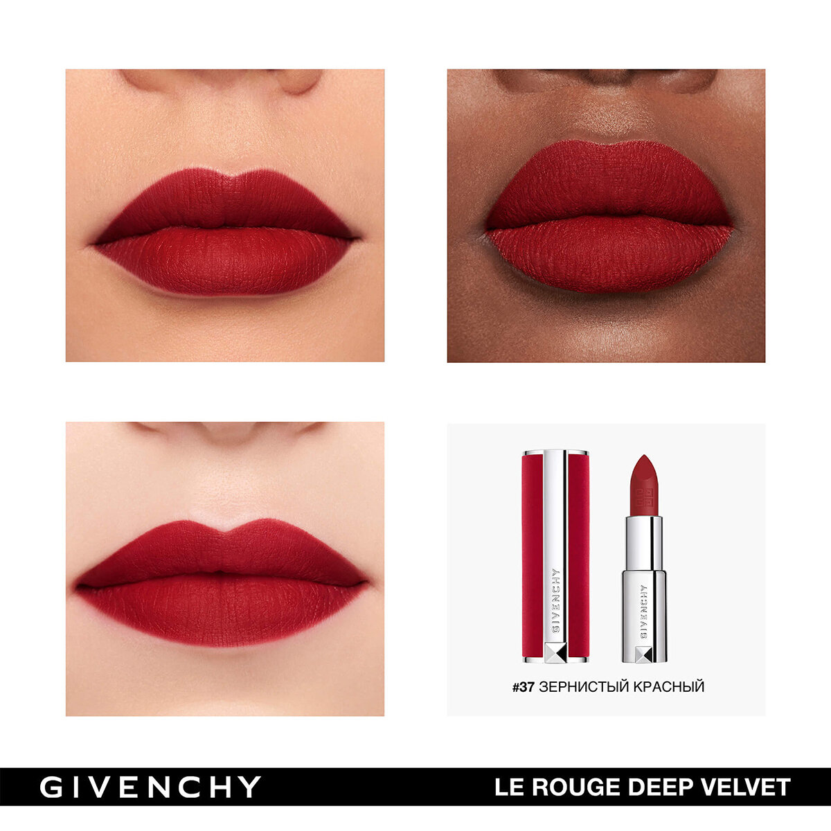 Стойкая матовая губная помада 37 зернистый красный Givenchy Le Rouge Deep Velvet Lipstick
