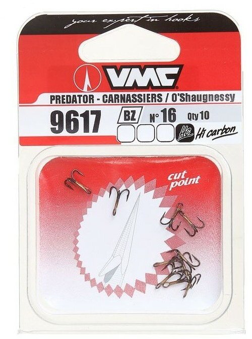 VMC, Крючки 9617 BZ, тройник, 10шт., №16, арт.9617BZ-16-D