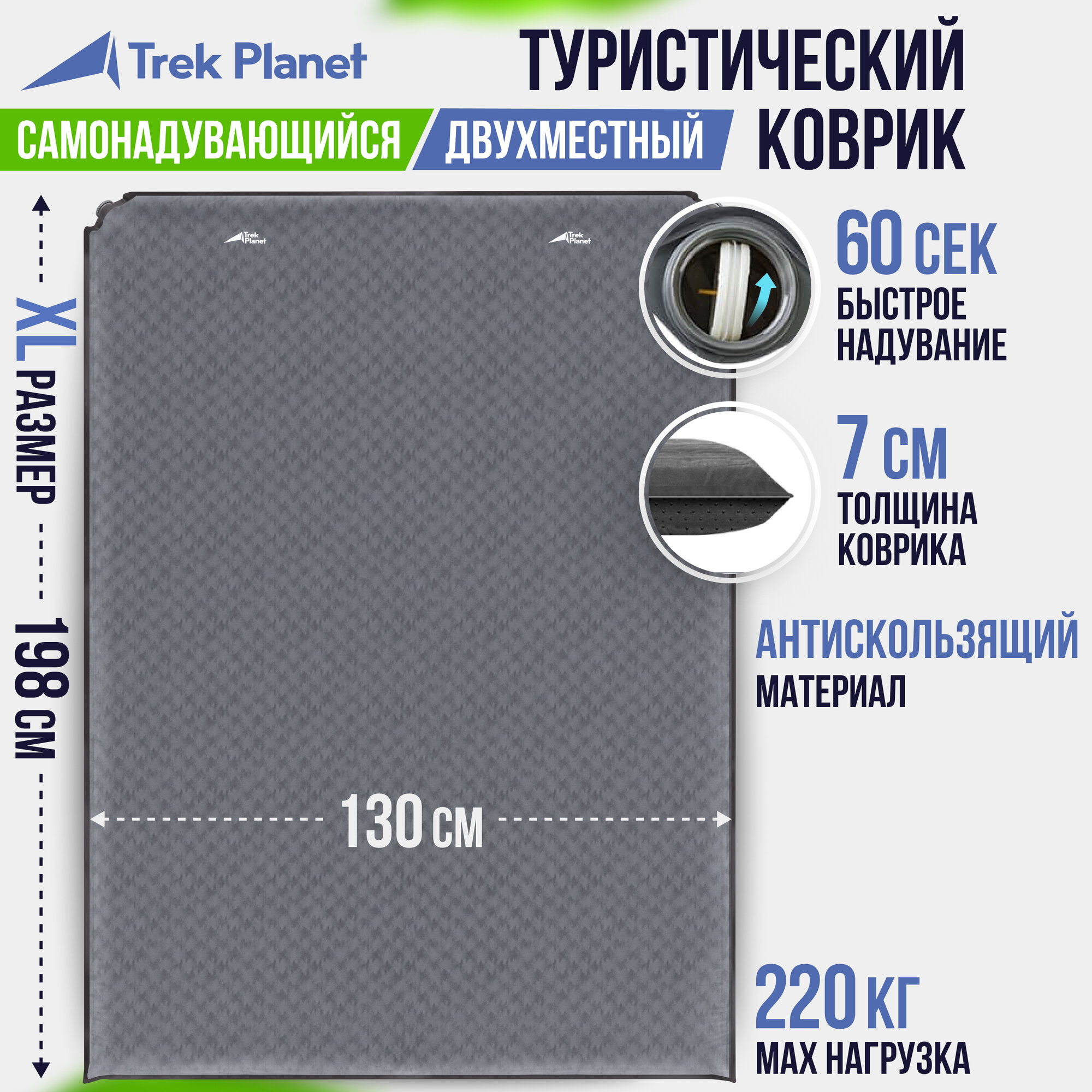 Коврик самонадувающийся кемпинговый TREK PLANET двухспальный Relax 70 Double, 198 х 130 х 7 см