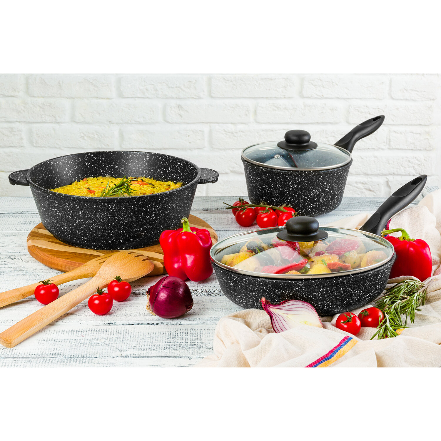 Сковорода глубокая Elan Gallery гармония вкуса "Черный мрамор"120111, 28см