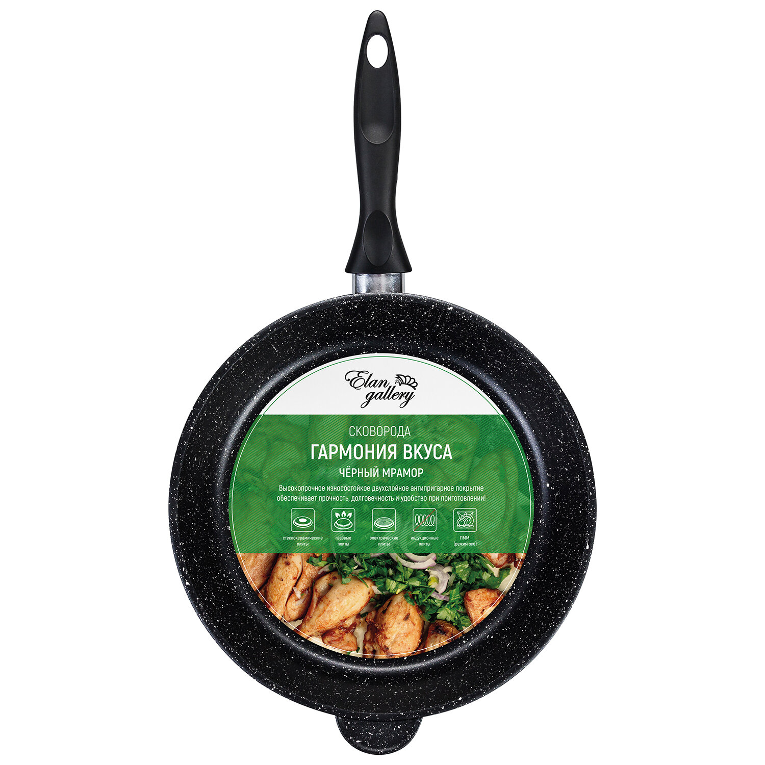 Купить Сковорода глубокая 28 см Elan Gallery гармония вкуса Черный мрамор без крышки с несъемной ручкой