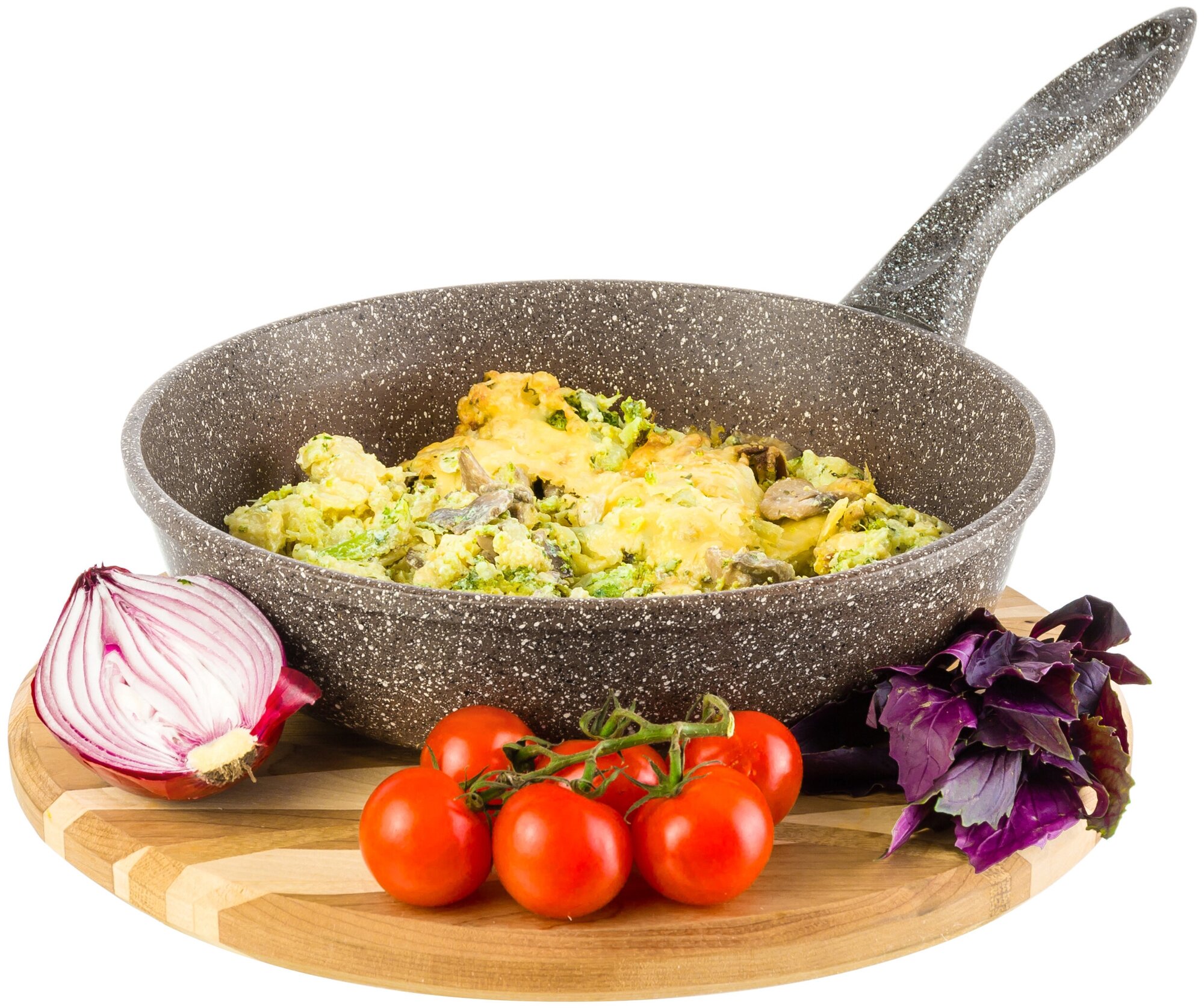Сковорода глубокая 24 см Elan Gallery гармония вкуса Серый мрамор с крышкой D24, с несъёмной ручкой