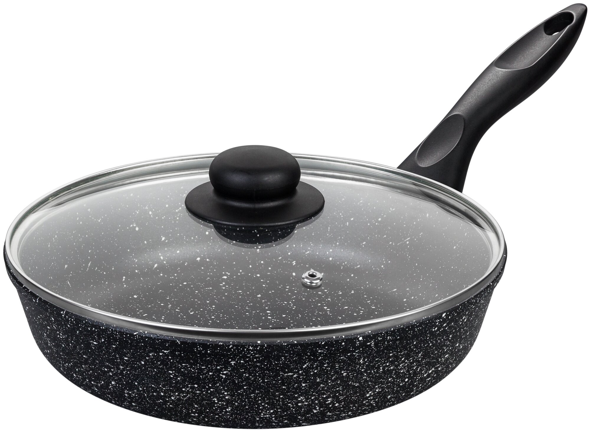 Купить Сковорода глубокая 24 см Elan Gallery гармония вкуса Черный мрамор с крышкой D24, с несъёмной ручкой