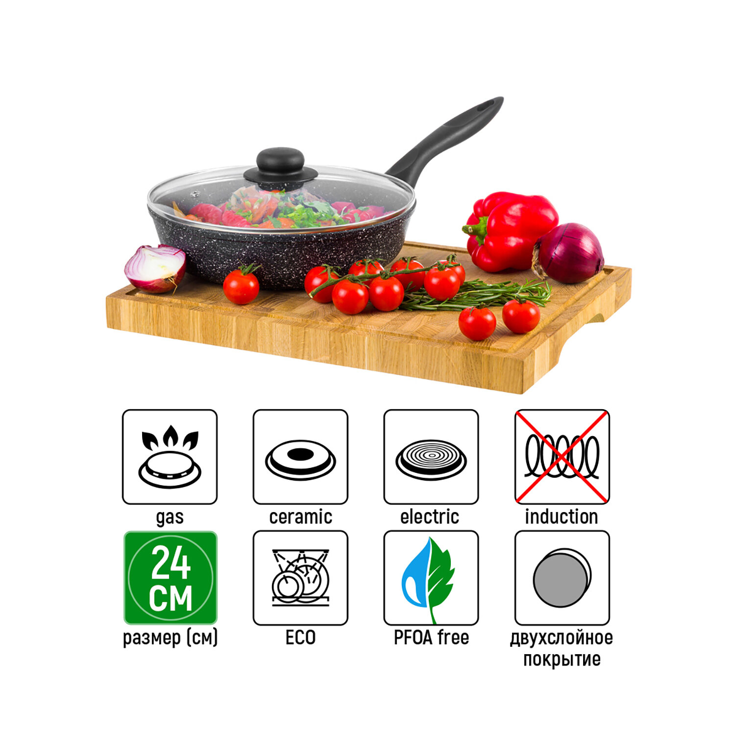 Сковорода глубокая 24 см гармония вкуса "Черный мрамор" С крышкой ф24, н/р, 43,5*25*11,5 см