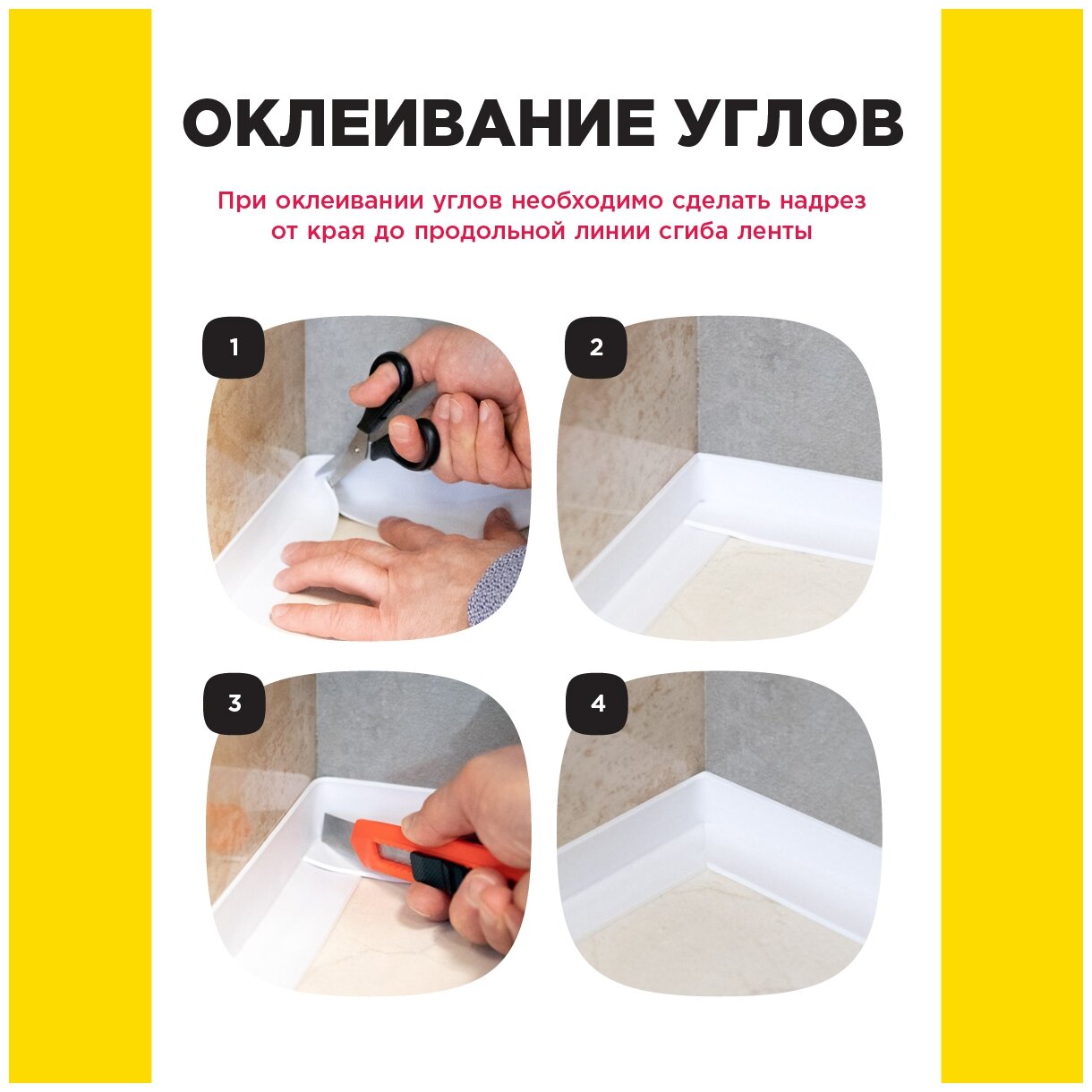 Лента клейкая бордюрная для ванн и раковин 60мм (30х30мм), 3,35м, белая