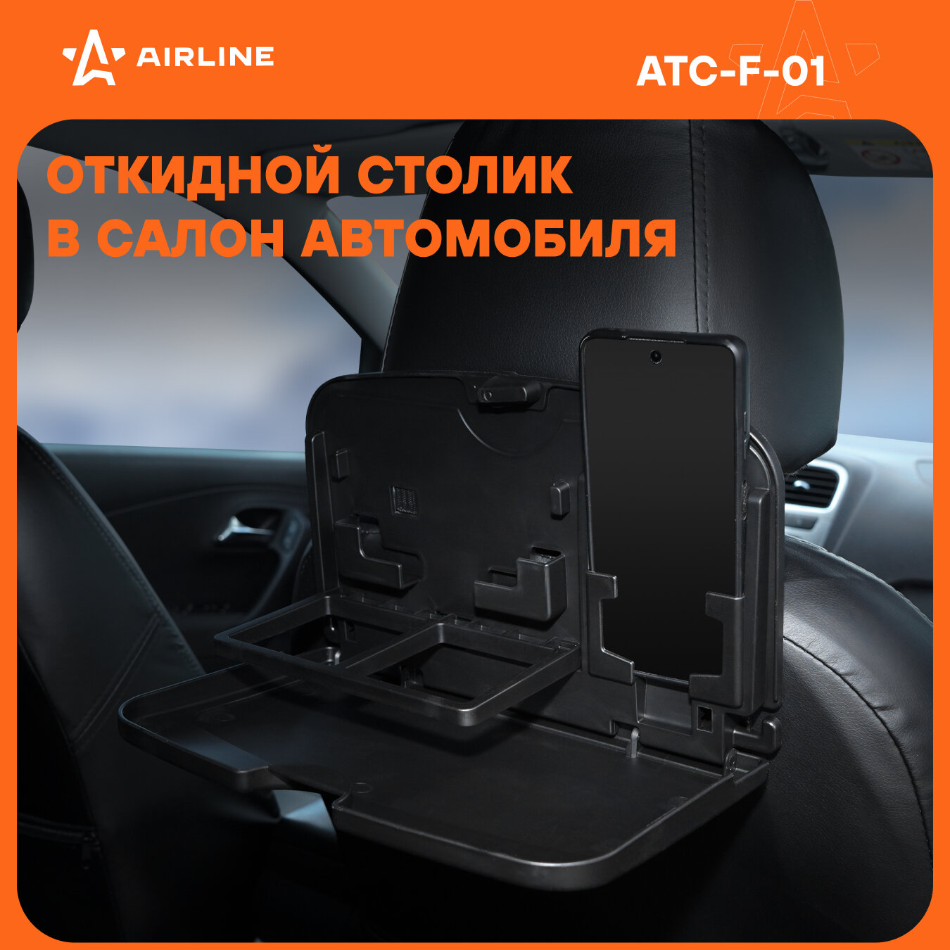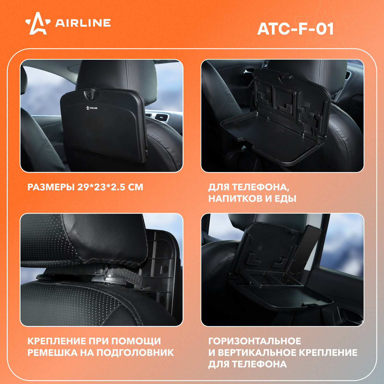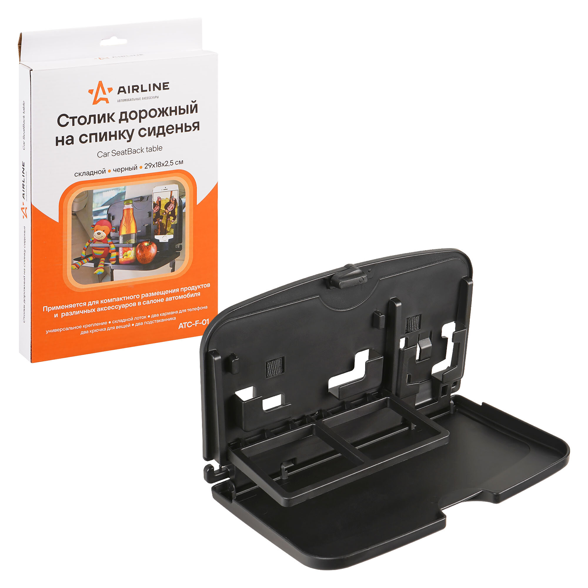 Столик автомобильный Airline, на спинку сиденья, 290x180x230мм, черный, складной, арт. ATC-F-01