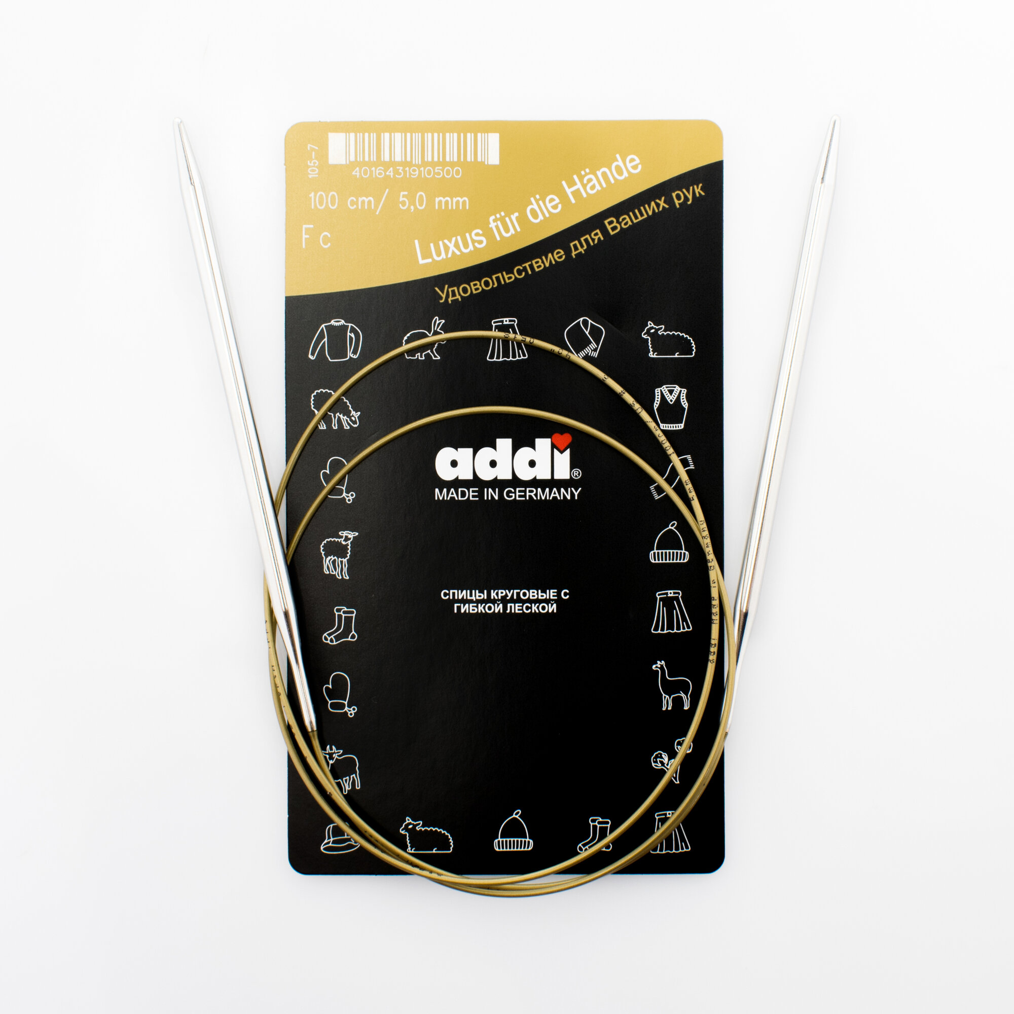 Спицы ADDI круговые супергладкие 105-7, диаметр 5,0 мм, длина 100 см, серебристый/золотистый