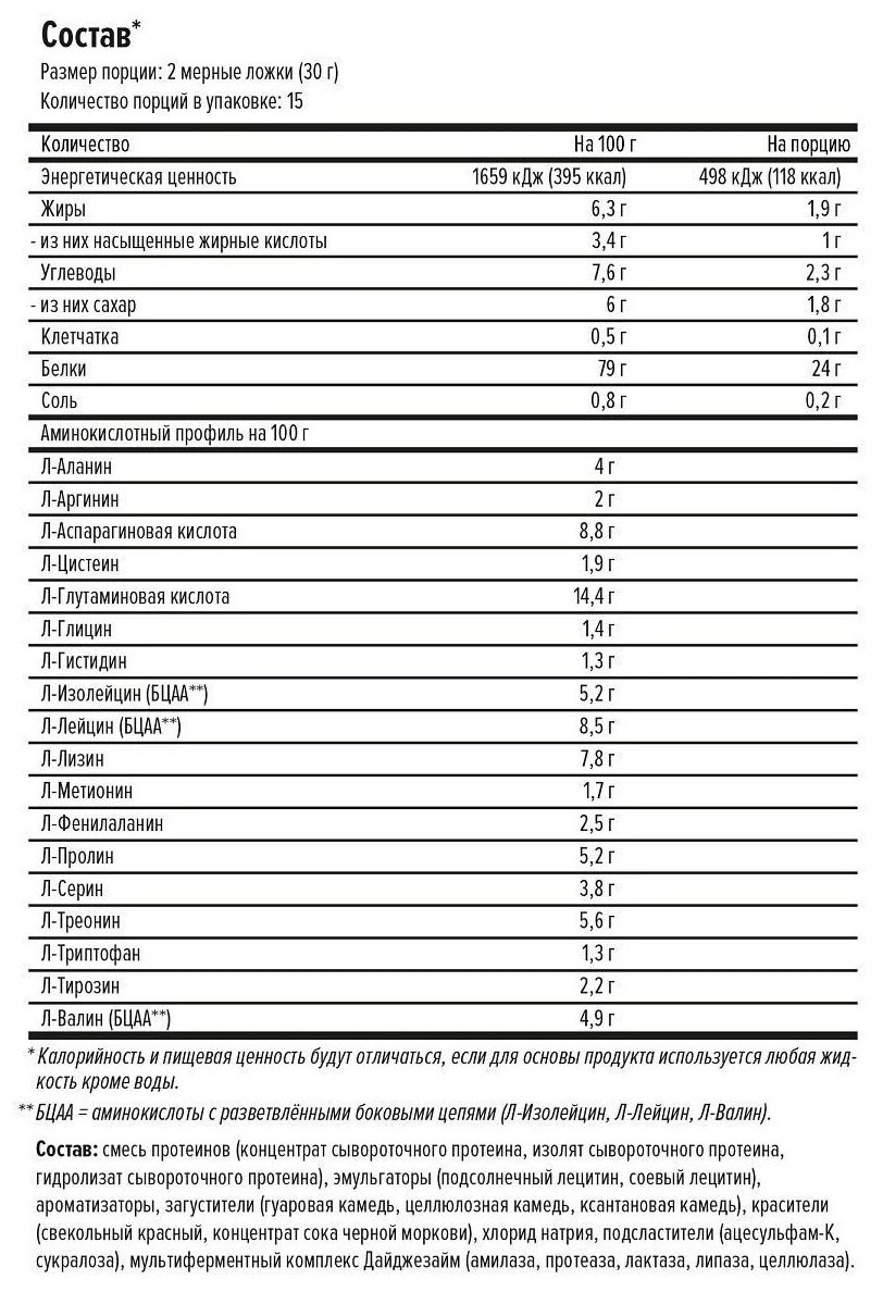Сыворотка сама по себе хорошо усваивается, так еще и мультиферментный комплекс добавили. Вкус приятный, хотя малину с белым шоколадом заказал по ошибке и думал не понравится, а на деле очень приятно пахнет и вкус на высоте - очень рекомендую попробовать, Я вкуснее протеина еще не пробовал. За такую цену идеальный выбор. |