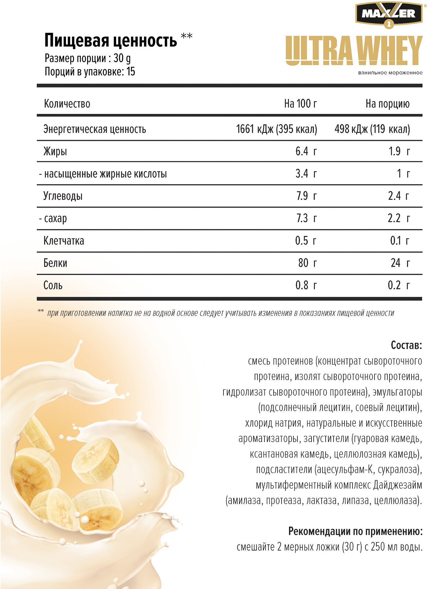 Сывороточный протеин MAXLER Ultra Whey 900 г, Молочный коктейль с бананом