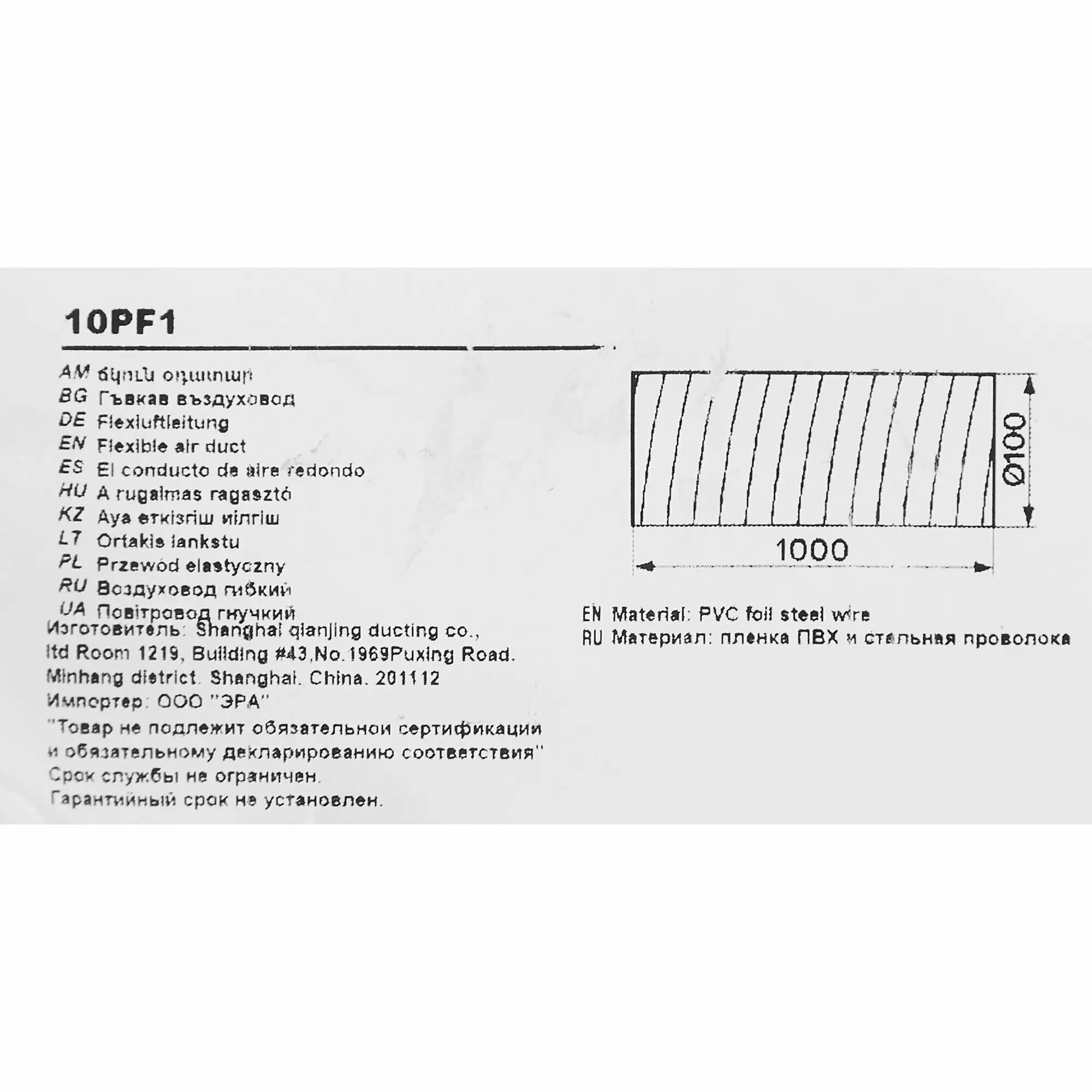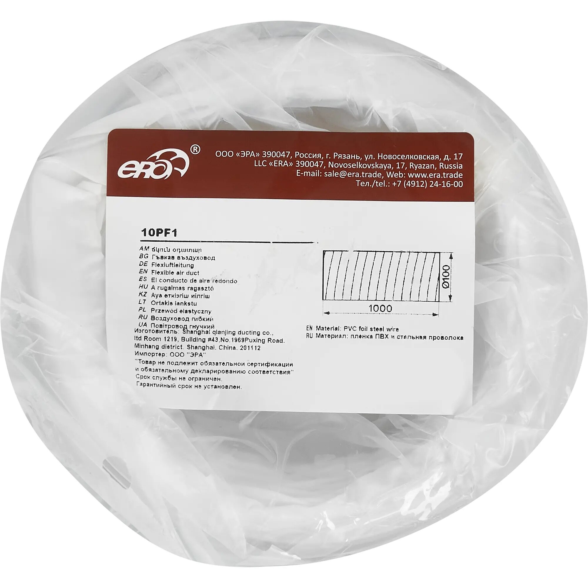 Круглый гибкий воздуховод ERA 10PF 100 мм 1000 мм