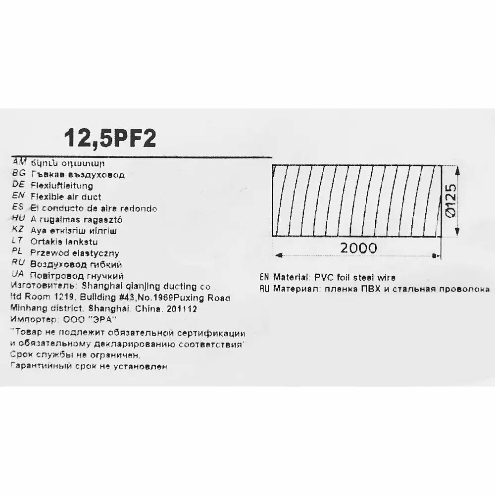 Круглый гибкий воздуховод ERA 12,5PF 2000 мм 125 мм
