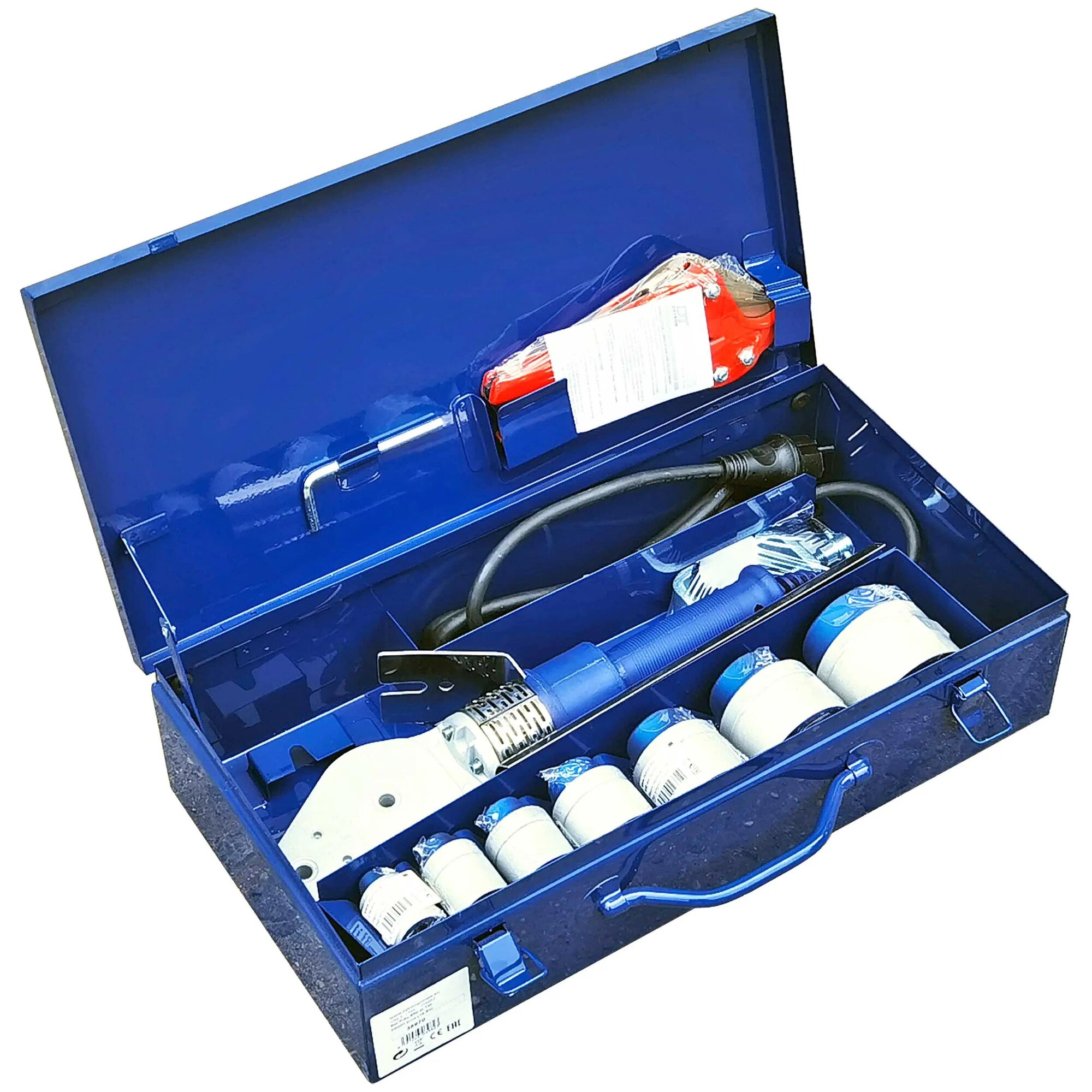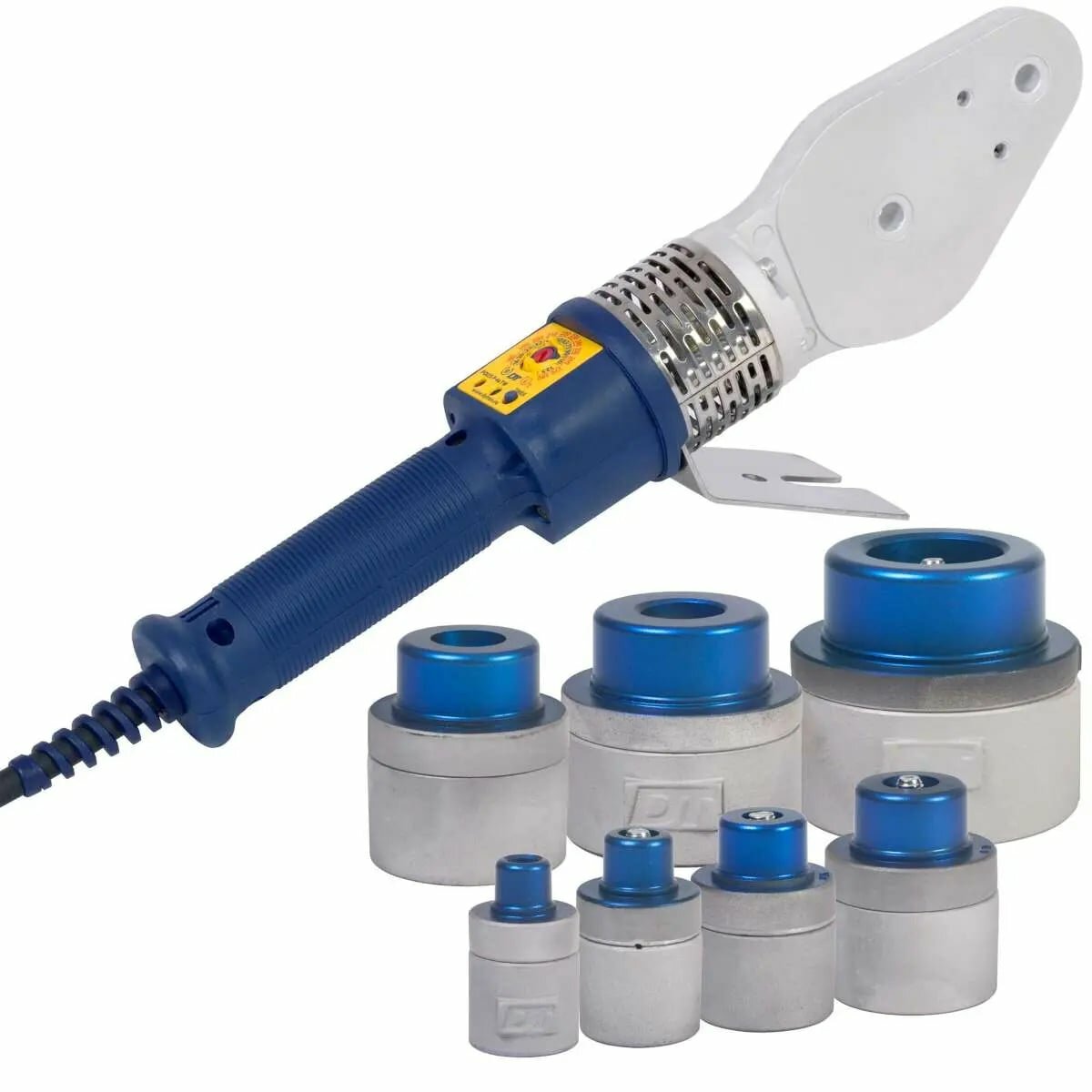 Купить Сварочный аппарат / Аппарат для сварки полипропиленовых труб / Комплект PROFI blue Сварочный аппарат мечевидный DYTRON P-4a 850 W TraceWeld, с парными насадками 16,20,25,32,40,50,63 мм