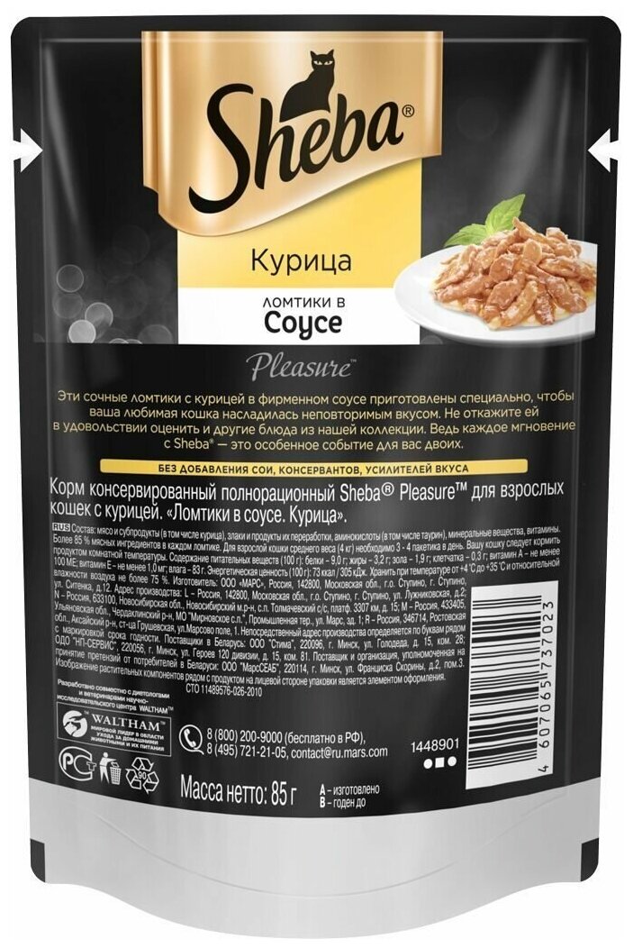 Ниже Вы можете прочитать отзывы на SHEBA Pleasure Пауч для кошек ломтики в соусе с Курицей 85 г, ознакомится с подробными характеристиками, посмотреть интересные обзоры и фотографии на SHEBA Pleasure Пауч для кошек ломтики в соусе с Курицей 85 г.
