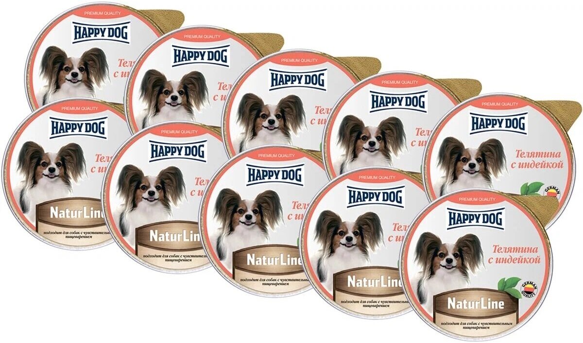 HAPPY DOG NATUR LINE для взрослых собак маленьких пород паштет с телятиной и индейкой (125 гр х 10 шт)
