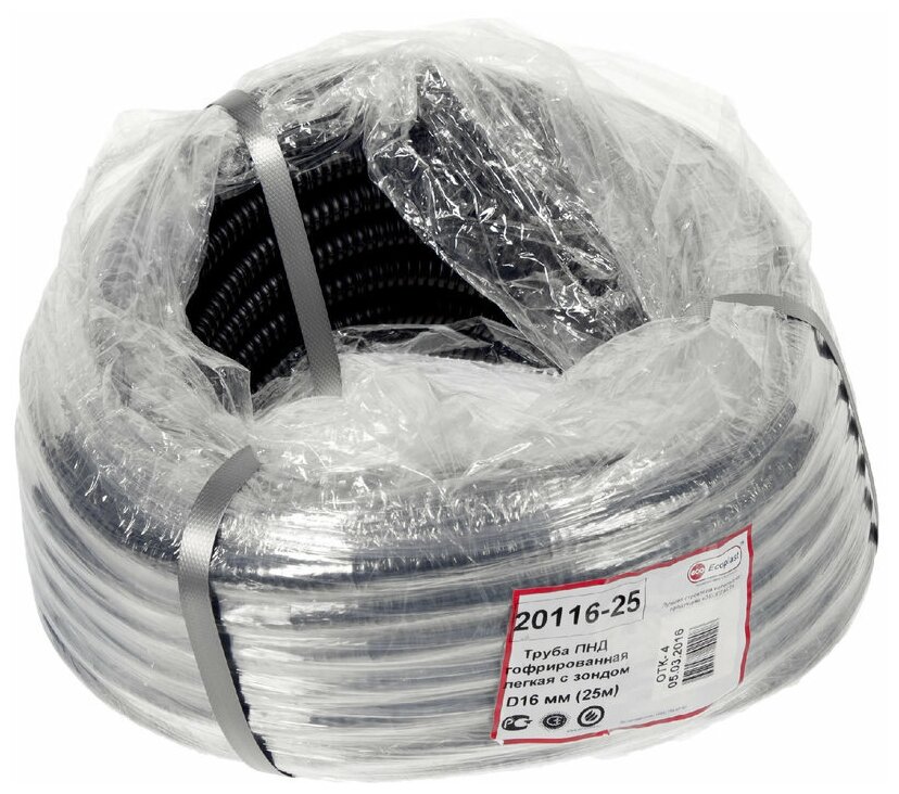 Труба ПНД Экопласт гофрирированная легкая, с зондом диаметр 16 мм, 25м 20116-25B интересное: