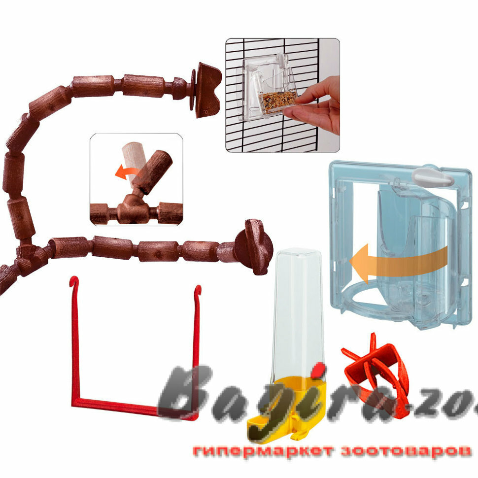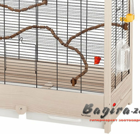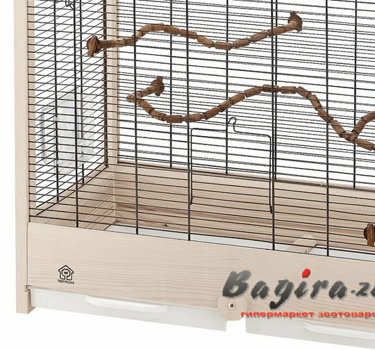 | Плюсы: | Большая и просторная клетка, выдвижные подносы, много дверец, удобные крутящиеся кормушки |