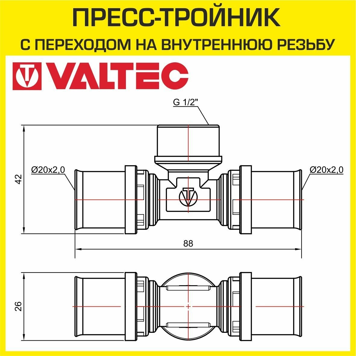 Тройник VALTEC VTm.232.N.200420 20x1/2"x20 пресс – резьба 1 шт.