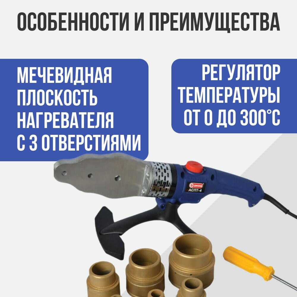 Аппарат для сварки полипропиленовых труб диолд АСПТ-4 (1500Вт) / аппарат для соединения пластиковых, ПВХ труб, 6 насадок