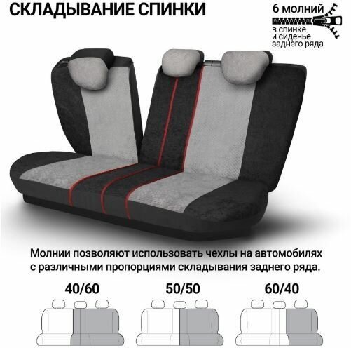 Комплект чехлов на сиденья COMFORT, материал велюр COM-0405 BK/D.GY