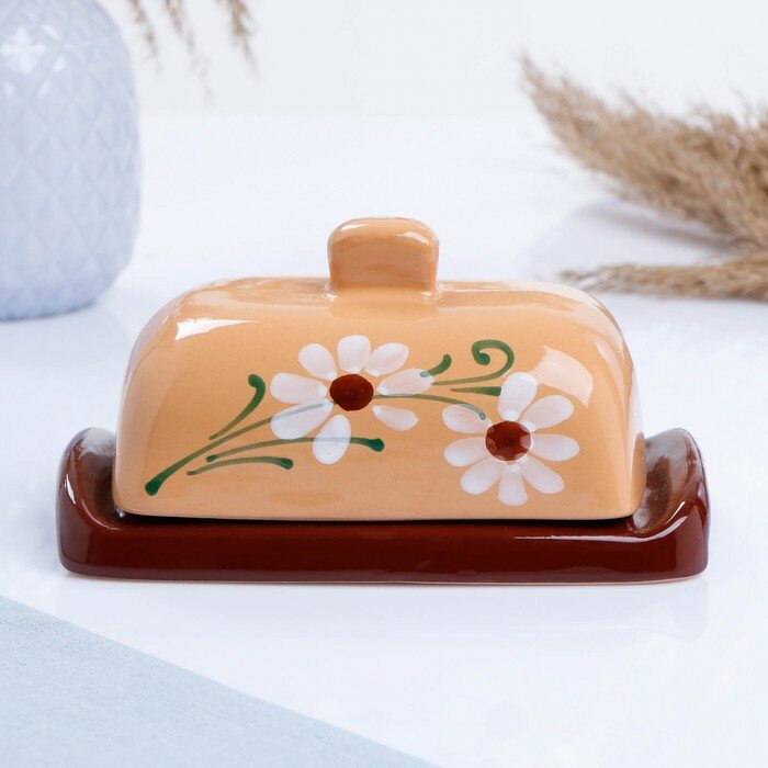 Масленка керамическая "Русская" 17х9,5х9 см Борисовская керамика, цвет бежевый/коричневый ОБЧ14457628