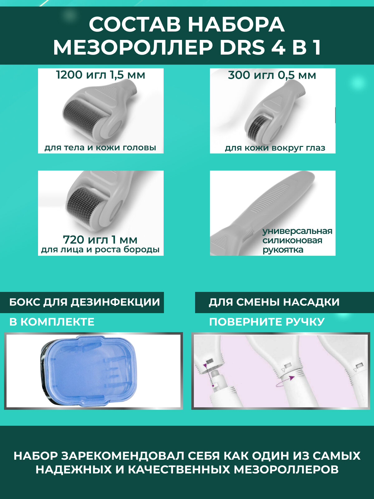 DRS Набор мезороллер 4 в 1 для лица, тела и кожи головы интересное: