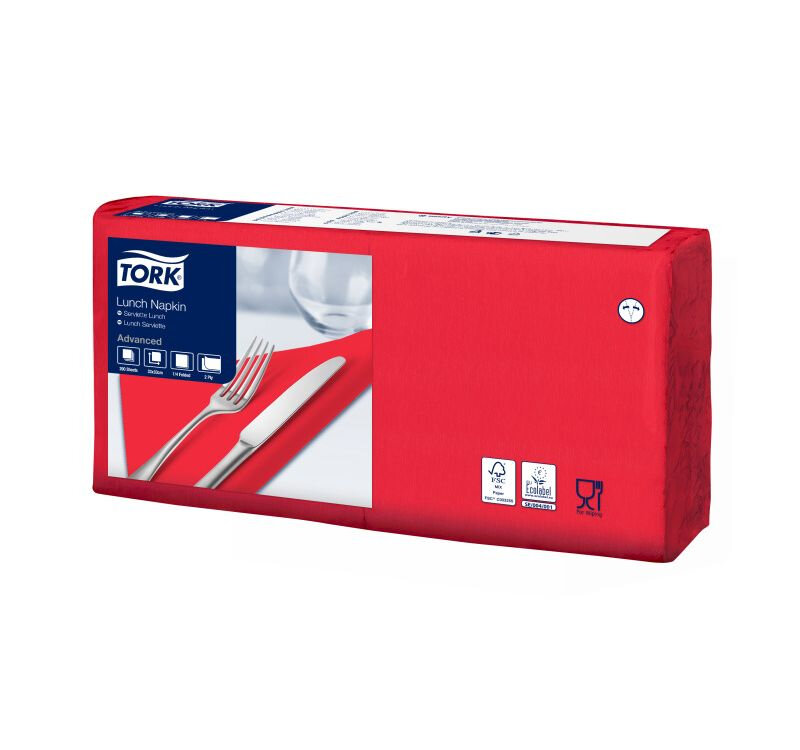 Купить Салфетки TORK Advanced, 200 листов, 33х33, 2-слойные, цвет: красный