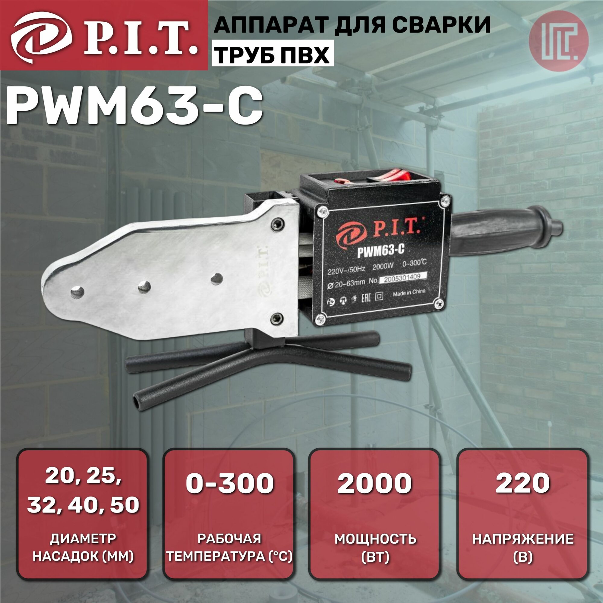 Сварочный аппарат для пластиковых труб P.I.T. PWM63-C мастер раструбная 2кВт (кейс в комплекте)