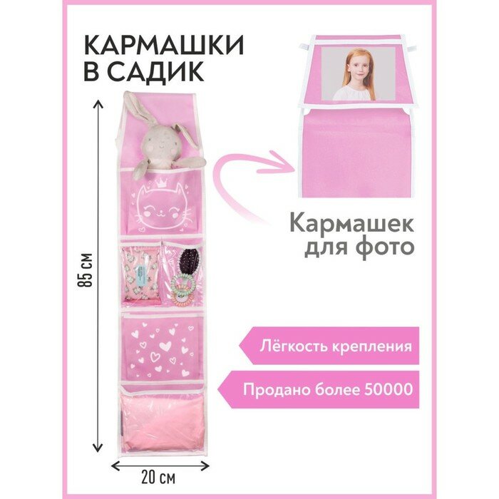 СохранитьКармашки в садик для детского шкафчика 85х20 см, Сердечки (розовые) интересное: