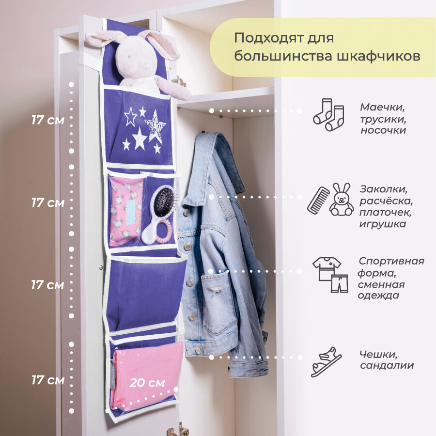 СохранитьКармашки в садик для детского шкафчика 85х20 см, Звезды (Сиреневые) интересное: