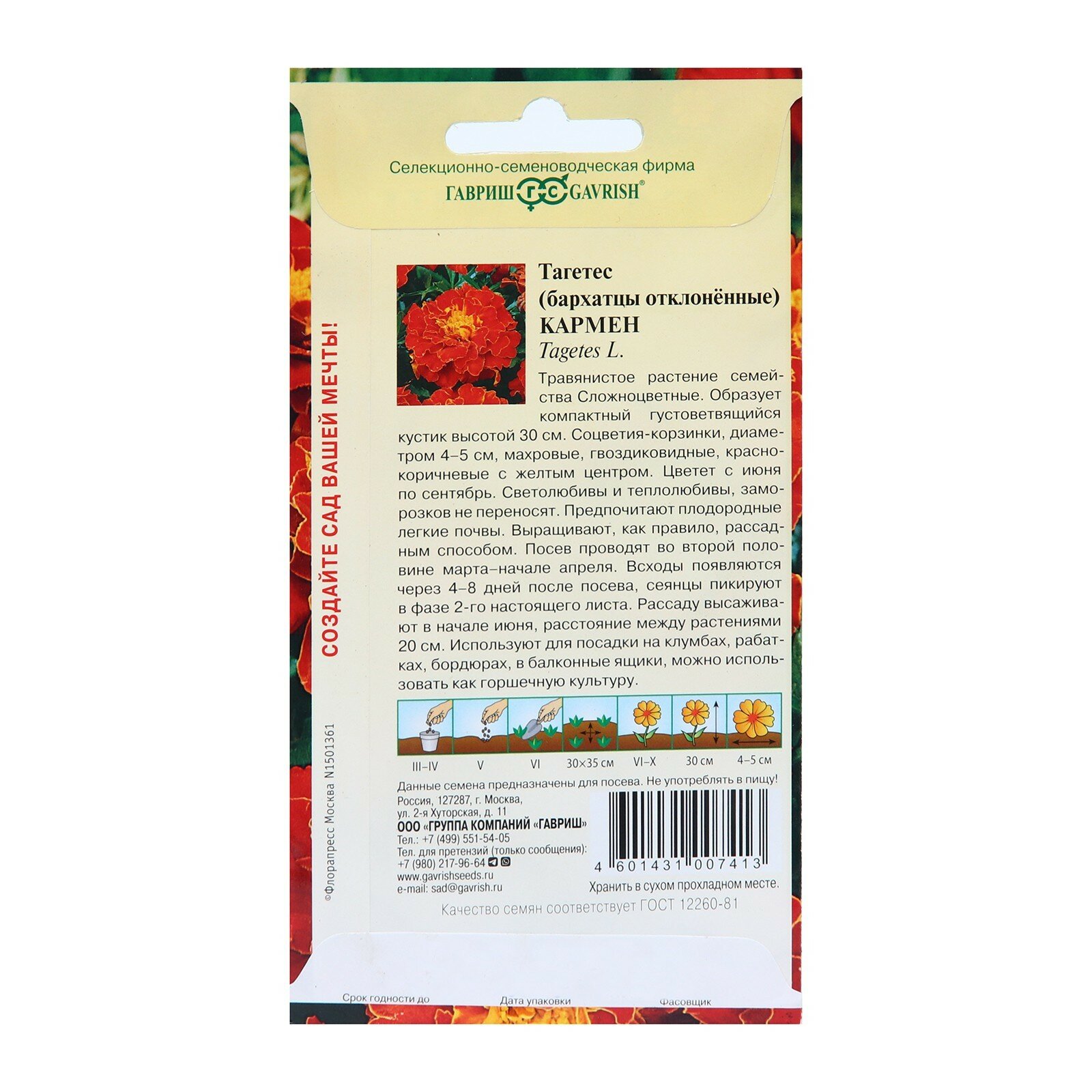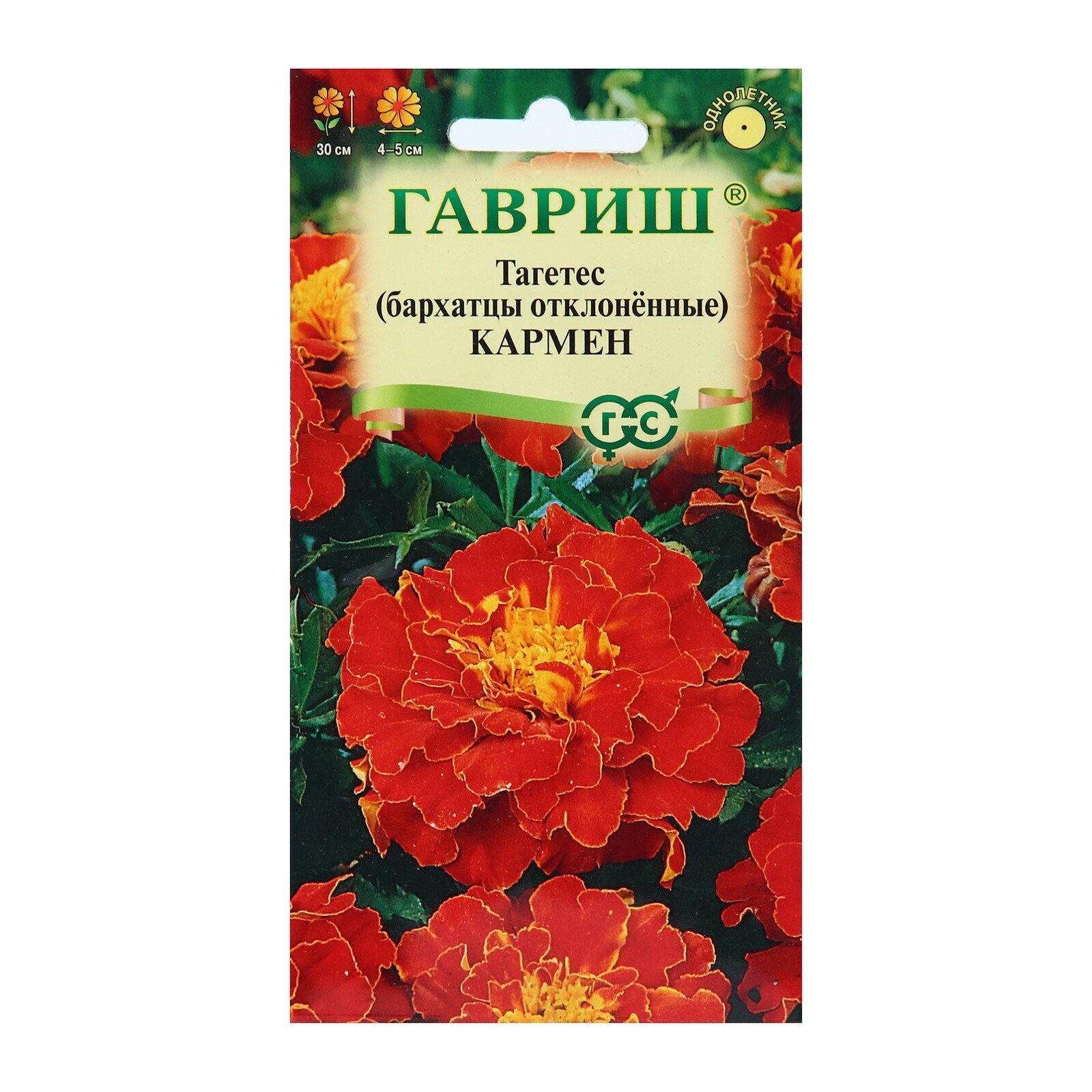 Семена Бархатцы отклоненные (тагетес) Кармен, 0,3г, Гавриш, Цветочная коллекция, 10 пакетиков