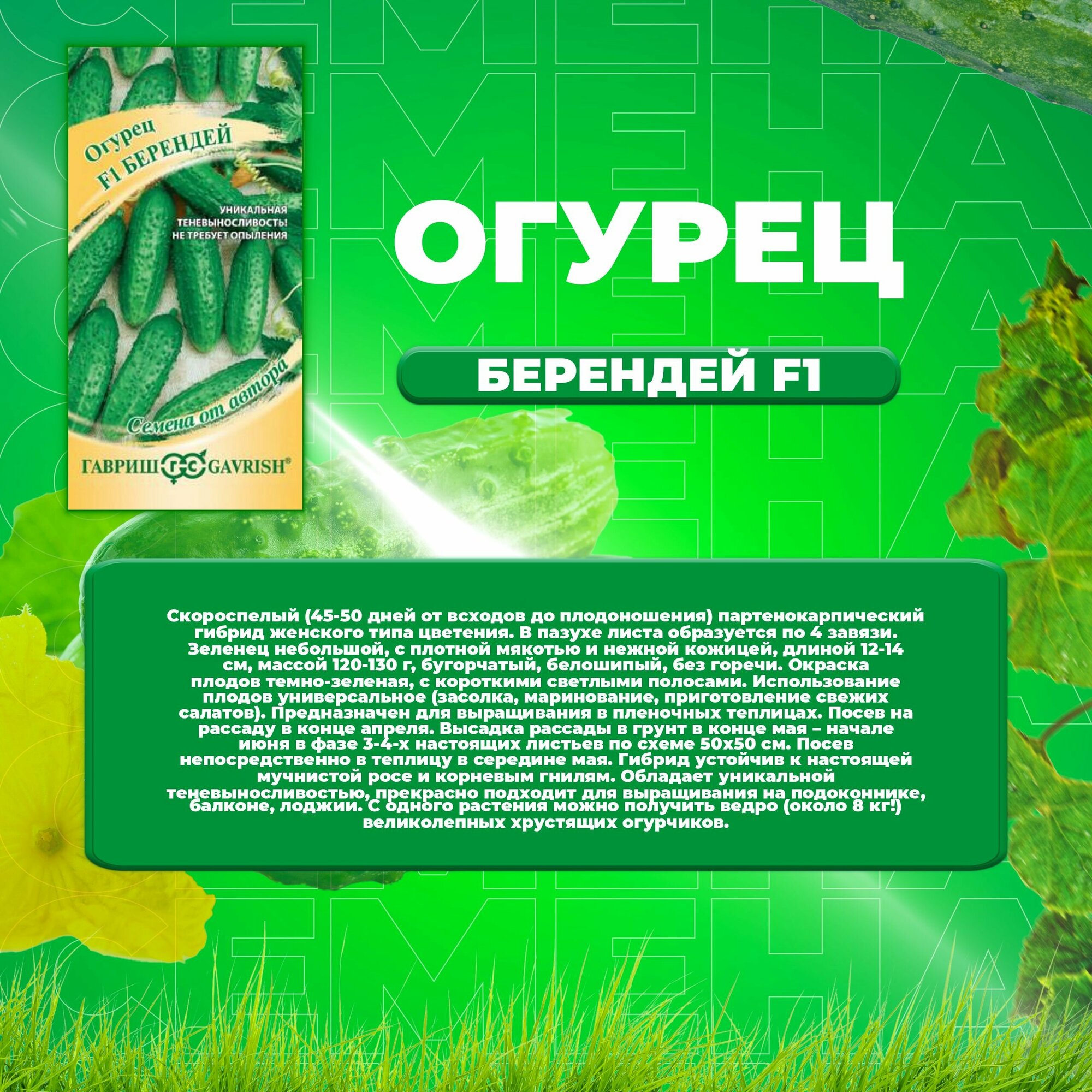 Семена огурца "Берендей", F1, 10 шт. интересное: