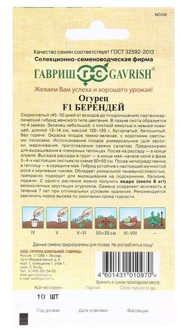Гавриш Семена огурца "Берендей", F1, 10 шт.