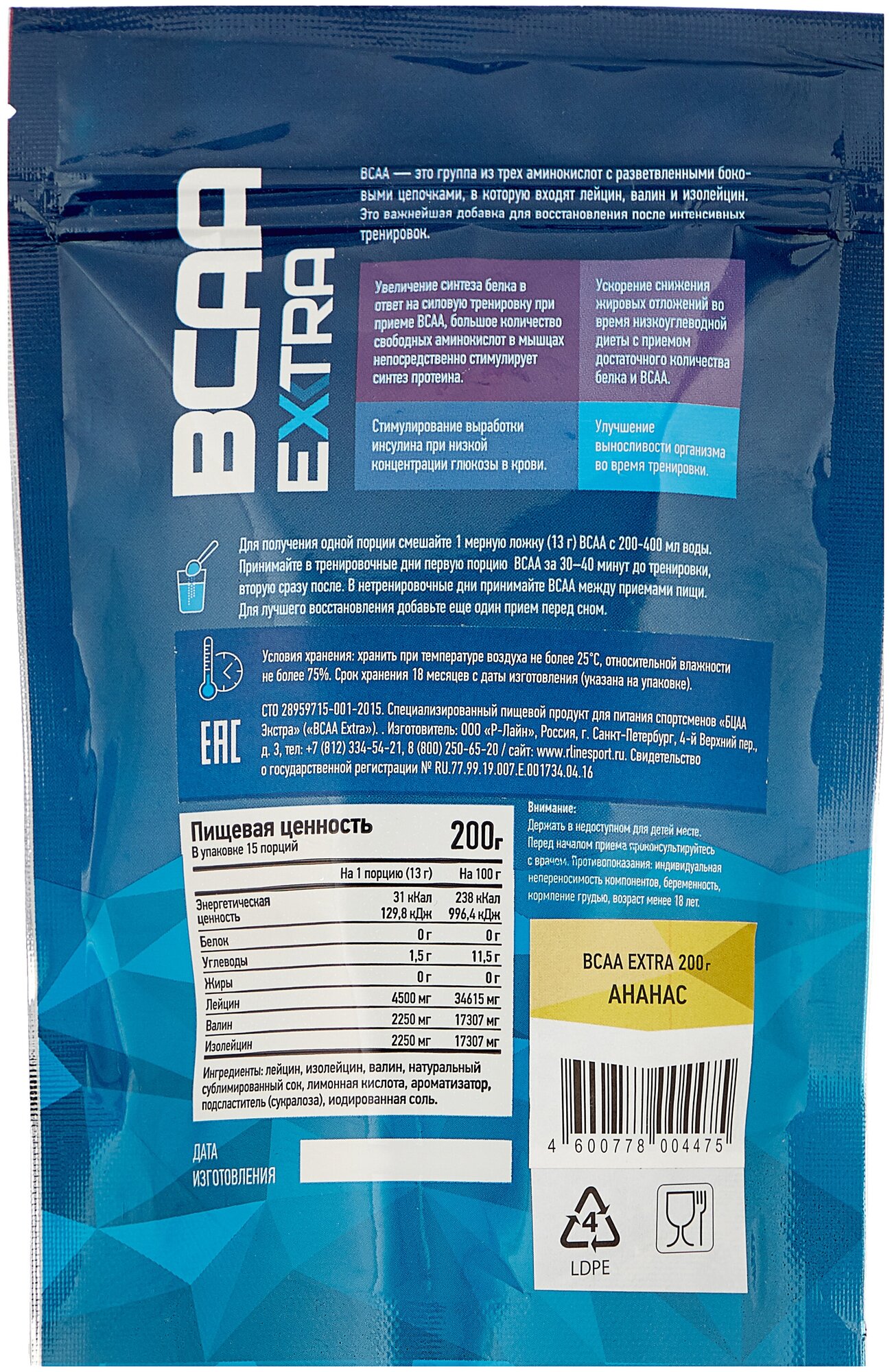 BCAA Extra 200 гр (R-Line Sport Nutrition) Ананас