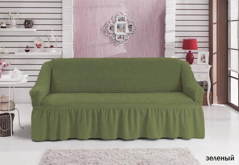 Купить Чехол на двухместный диван на резинке Bulsan с юбкой - Зеленый