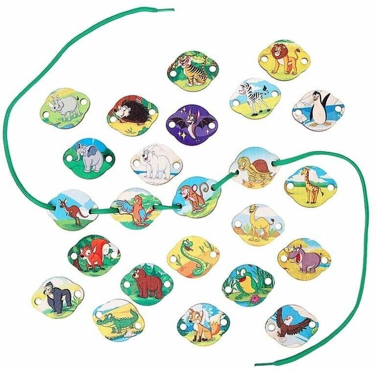 Развивающий набор шнуровка Дикие животные, 24 элемента